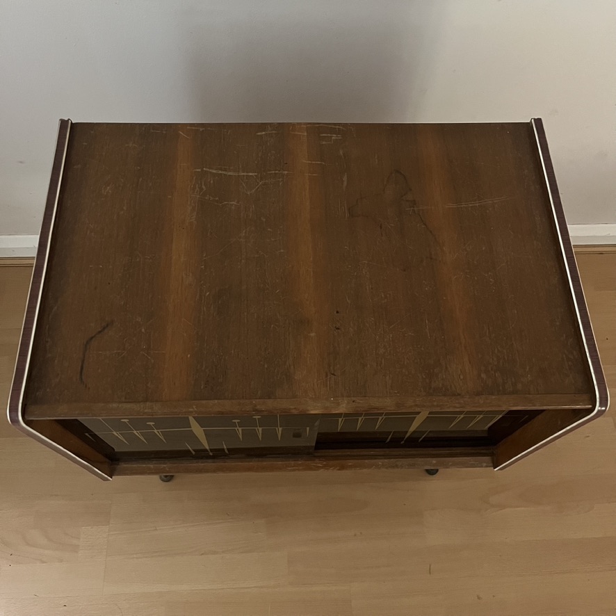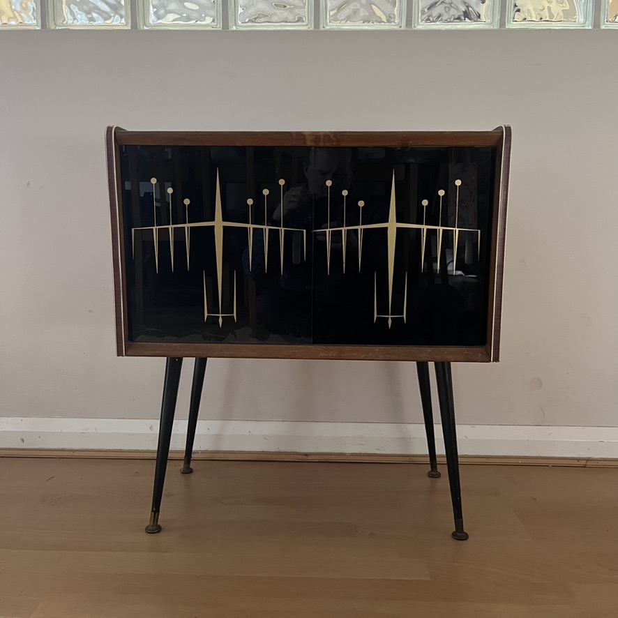 Mid-Century Modern Vinyl Record Storage Cabinet Glass Doors. Rare example.