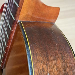 The back and sides are made of Katsura, one of the largest hardwood trees growing throughout Japan (described as Judaswood in the Yamaha 1971 catalogue). Neck is made of nato. Fingerboard and bridge are made of bubinga. Scale length (nut to bridge) 658mm.